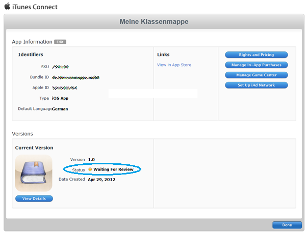 Juhu, es ist geschafft – die mobile Klassenmappe ist jetzt in Amerika (oder doch Deutschland?) und wird dort von Apple begutachtet.